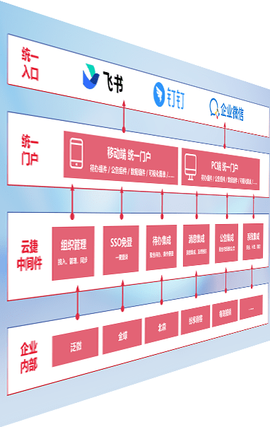 对协作平台提供支持服务,,,支持企业应用与协作平台对接,,,包含组织同步、、、消息集成、、、待办集成等。。支持目前主流的协作平台:钉钉、、、、企微和飞书。。
